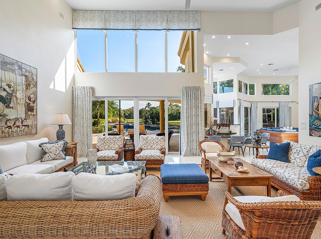 Exquisite single-story residence in the prestigious community of Frenchman's Creek offering 3 bedrooms plus an office, 5.5 bathroom and over 4200 sf of living space. Set on half an acre of private land, this home enjoys sweeping lake views that serve as a serene backdrop from nearly every room.