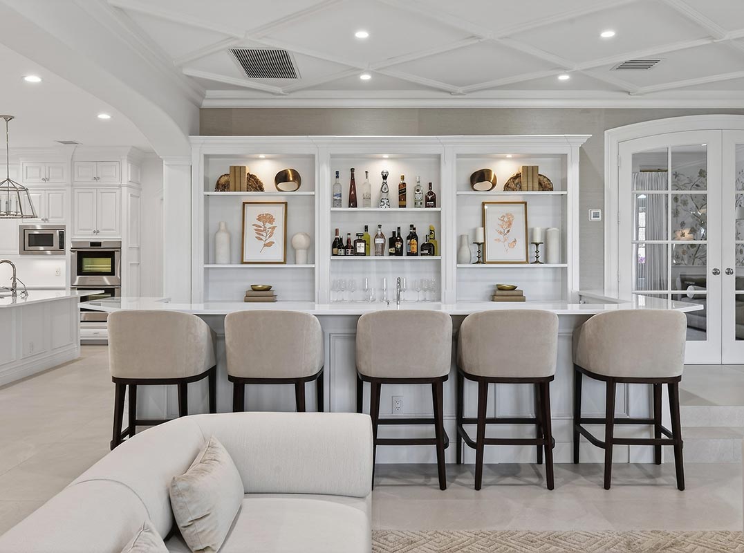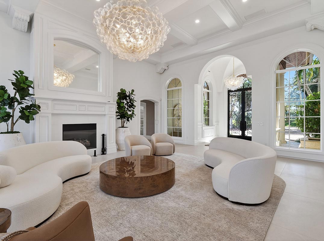 A grand arrival sets the tone, with a stately entrance, full-house generator, and commanding presence. Perfectly positioned, the home enjoys serene water inlet views on one side and sweeping golf course vistas on the other--without sightlines to neighboring homes or garages, creating a sense of complete seclusion. The interiors are both expansive and refined, featuring seven generously sized bedrooms, including two primary suites and a junior suite, complemented by eight full bathrooms, a half bath, and an additional powder room. Two private libraries, dual elevators, including a dedicated elevator serving the primary suite, and multiple gathering spaces enhance both comfort and functionality. Designed for elevated living and entertaining, the home offers two oversized family rooms, upstairs and down, two full bars for indoor and outdoor enjoyment, and a stunning wine room. Dual chef's kitchens anchor the home, each featuring 10-foot islands and a total of four refrigerators, ideal for hosting on any scale. A whole-house water purification system ensures uncompromising quality throughout.