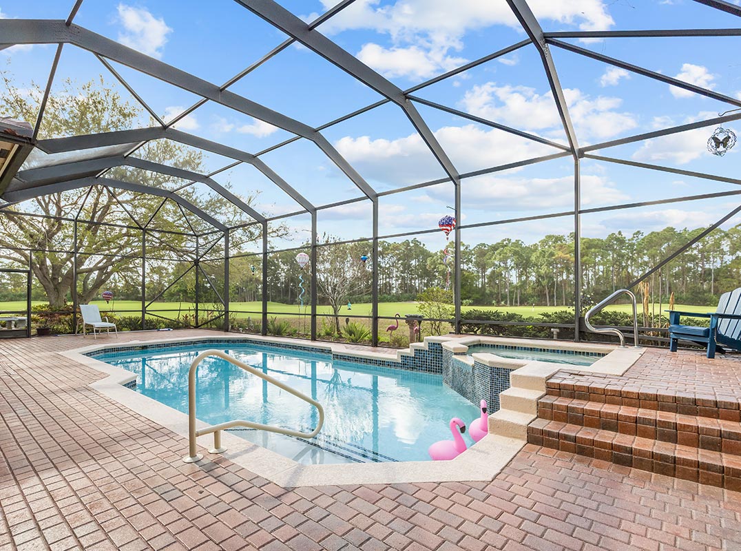 Location, location, location! Privately positioned in the Estate Section of Summerfield, this custom-built residence rests at the end of a quiet cul-de-sac on an oversized pie-shaped lot offering approximately 120 feet of golf course frontage with tranquil preserve views beyond, creating exceptional privacy and abundant wildlife. This spacious home features four bedrooms plus a study, three full baths, and an expansive family room, highlighted by soaring 14-foot ceilings in the main living areas that enhance the open, light-filled design. The thoughtfully designed floor plan flows seamlessly to the outdoor living spaces. Enjoy resort-style outdoor living with a gorgeous gas-heated screened pool and spa, complete with an on-site gas tank, extended covered patio, and sweeping golf course vistas where golfers can be seen in the distance while you relax in total serenity. The home has been meticulously maintained and continually upgraded, including a newer barrel tile roof and a whole-house Generac generator providing peace of mind during power outages. Summerfield offers an exceptional lifestyle with golf, tennis, clubhouse, and restaurant amenities, along with city water and sewer and a low HOA. A rare opportunity to own one of the most beautifully positioned homes in Summerfield, offering space, privacy, and spectacular golf course views.