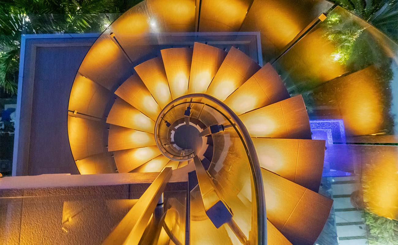 The outside of this compound offers many places to enjoy the tropical backdrop, whether it is from the multi-tiered pool, the intimate plunge pool, another rooftop pool, one of the two complete summer kitchens, or relaxing in the shade under one of the two built in retractable sun shades. With a six car motor court and garage, full house generator, a sound system that seamlessly integrates between all the living spaces (both interior and exterior), and $2 Million invested in technology, it’s hard to find a reason to leave.