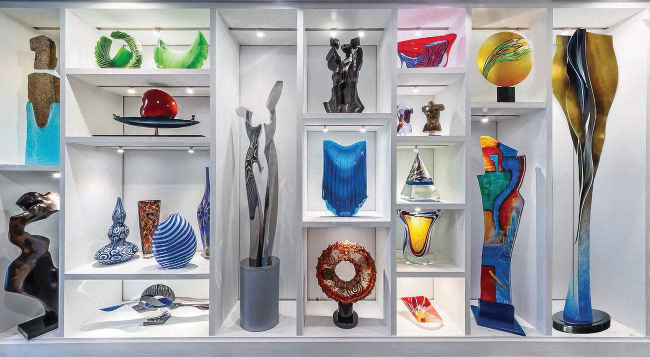 Multiplicity is at the heart of our curatorial philosophy. I’ve always believed that the most compelling collections — whether in a gallery or a home — are those that embrace contrast. A powerful glass sculpture beside a bold contemporary painting, or a photographic work paired with stainless-steel forms, can create a dialogue that elevates each piece. Blending mediums invites energy into the space; it reflects a life richly and thoughtfully collected. In curating, I consider how the works speak to one another, how they harmonize, and how they create a sense of movement throughout the gallery.