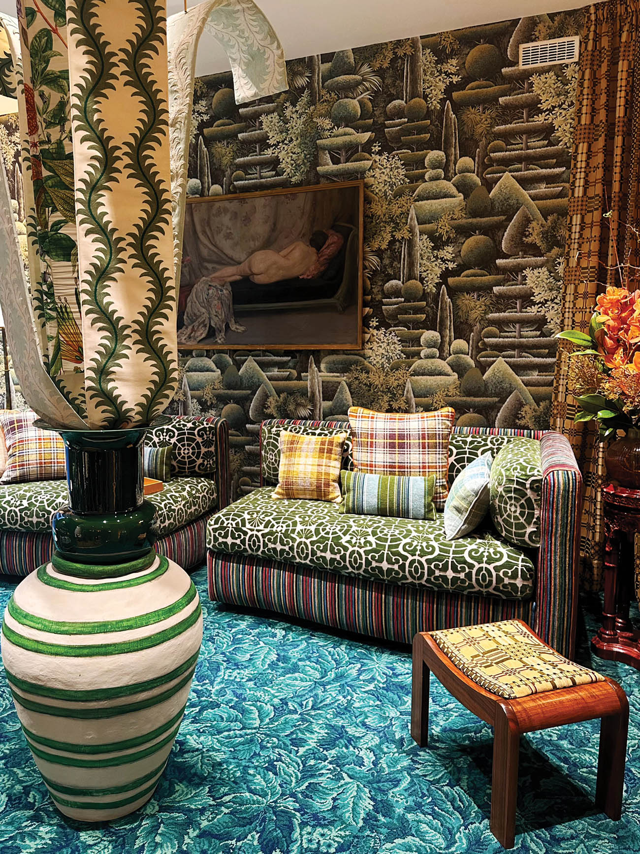 We were lucky enough to be invited by one of our favorite vendors, Arte, to tour their Belgium factory. It was fascinating to see what truly goes into manufacturing the wallpaper and the sampling and design processes. They have a new series of dark and moody murals based on vintage tapestries in aubergine, forest greens and browns. I’m so excited about these! They’re also keeping those fun tropical palms but interpreting them in a chic and edgy way.