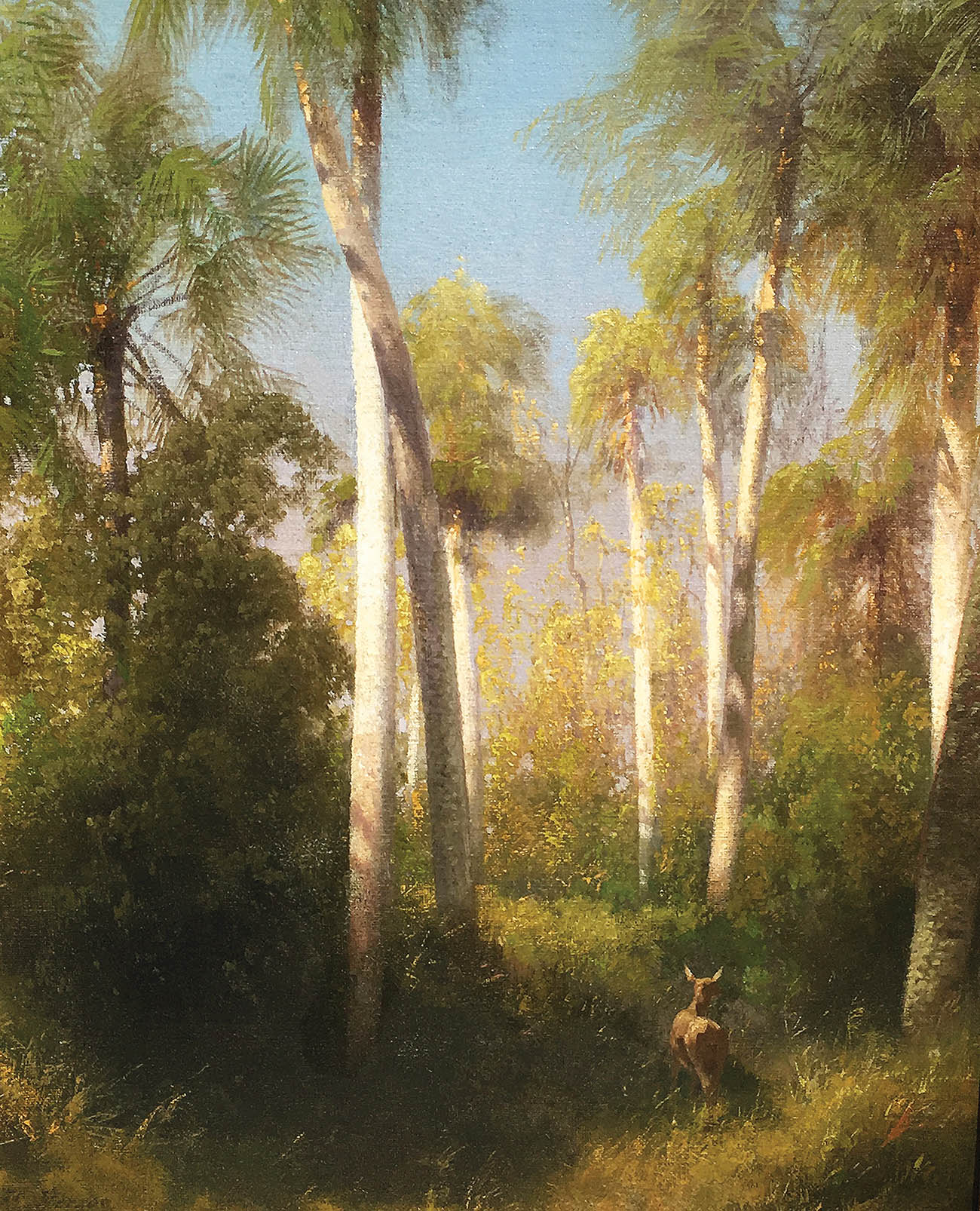 Hermann Herzog (American, 1832–1932), Deer in Woods (Florida), signed, oil on canvas.