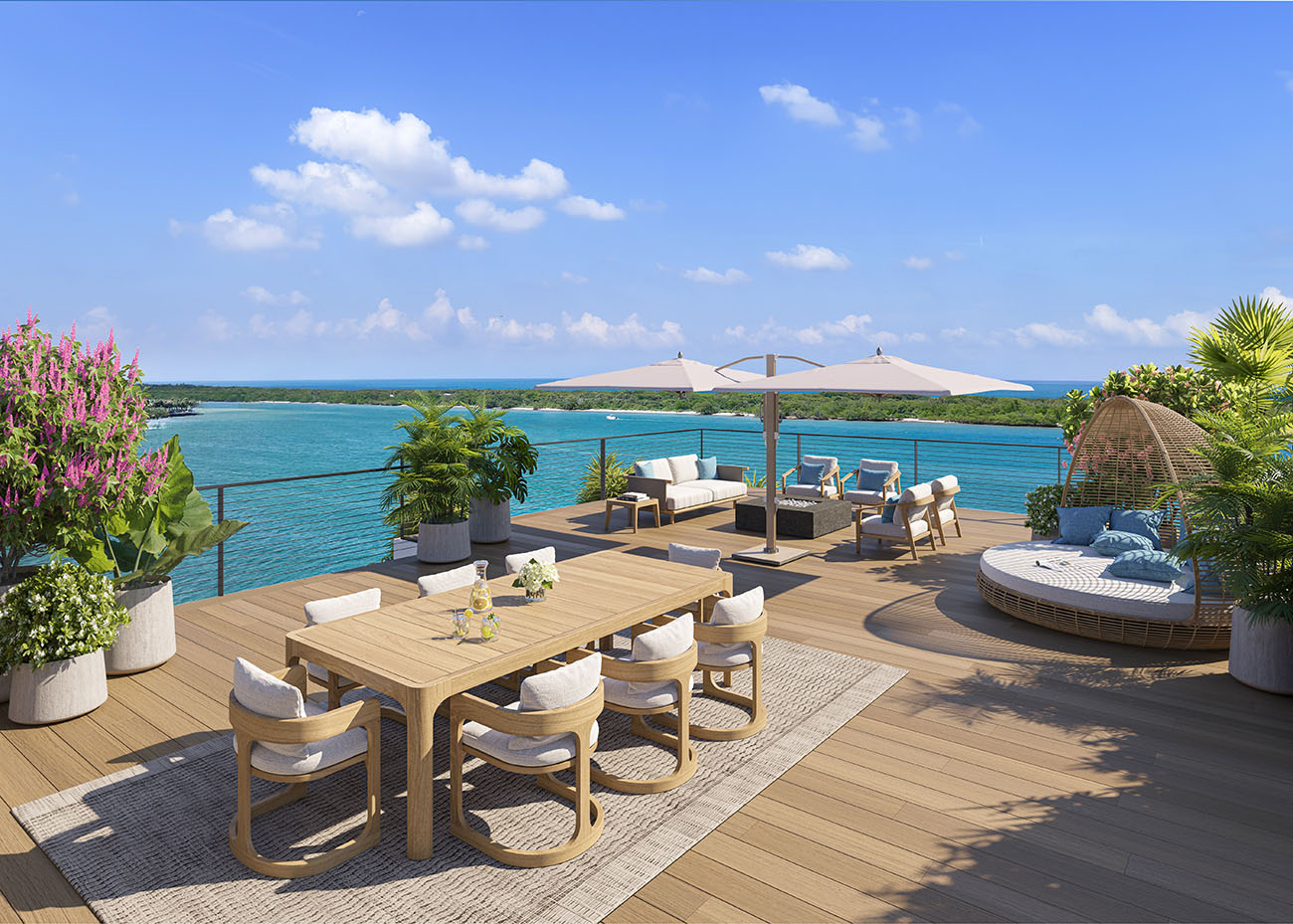 In South Florida, outdoor space is everything. Each residence features a waterfront covered rooftop terrace equipped with built-in outdoor gas grills, perfect for al fresco dining while taking in Intracoastal views. Select residences also feature private rooftop terraces, offering elevated views of the Intracoastal Waterway and the Atlantic Ocean.