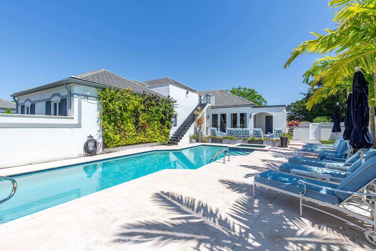 Completely renovated and ultra-private, this stunning estate on Maidstone Drive offers 5 bedrooms plus a separate, fully equipped 1-bedroom guest cottage. The spacious primary suite features a serene sun porch, while all three upstairs bedrooms boast their own private balconies. Perfect for entertaining or family living, it features a large pool area, lush landscaping, a striking live wall, and all impact glass throughout. Feels like a private resort–luxury, comfort, and style in the exclusive Palm Beach Polo and Country Club.