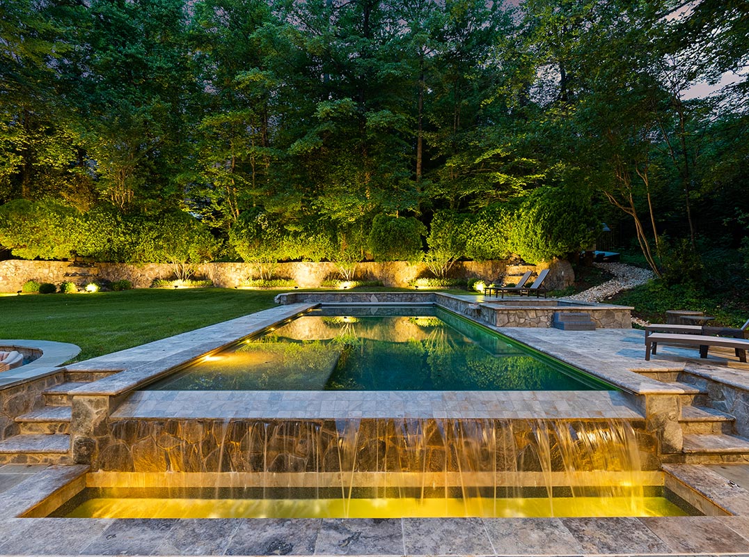 Outdoors, the resort-style backyard is a private oasis featuring a newly installed, heated saltwater infinity-edge pool and spa by Lewis-Aquatec. Lush professional landscaping encircles the garden providing an oasis of outdoor luxury. Additional premium amenities include an oversized, 3-car garage with 2 Tesla chargers, a Generac generator, commercial-grade WiFi, a state-of-the-art security system with cameras, and enhanced exterior lighting. The entire estate is fully fenced and gated. This is a rare, turnkey offering in one of McLean’s most discreet and prestigious enclaves. Completely reimagined and impeccably renovated to the highest modern standards, this estate offers elegance, comfort, and modern technology just minutes from the Nation’s capital.