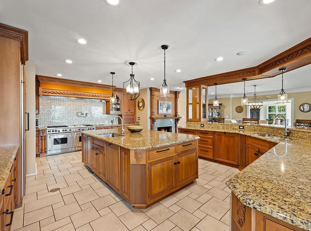 Inside, soaring ceilings and walls of glass frame the ever-changing views like a living masterpiece, while the grand chef’s kitchen, stone-floored sunroom, and elegant dining spaces invite gatherings large and small. The primary suite is an entire level of indulgence, complete with soaring ceilings, a fireplace, spa-like bath, wet bar, expansive dressing room, laundry, and its own private balcony for starlit evenings. Additional ensuite bedrooms and a guest suite with kitchenette ensure comfort for family and friends, while the lower level—with wine cellar, kitchenette, and direct access to the pool—extends the living space to the outdoors.