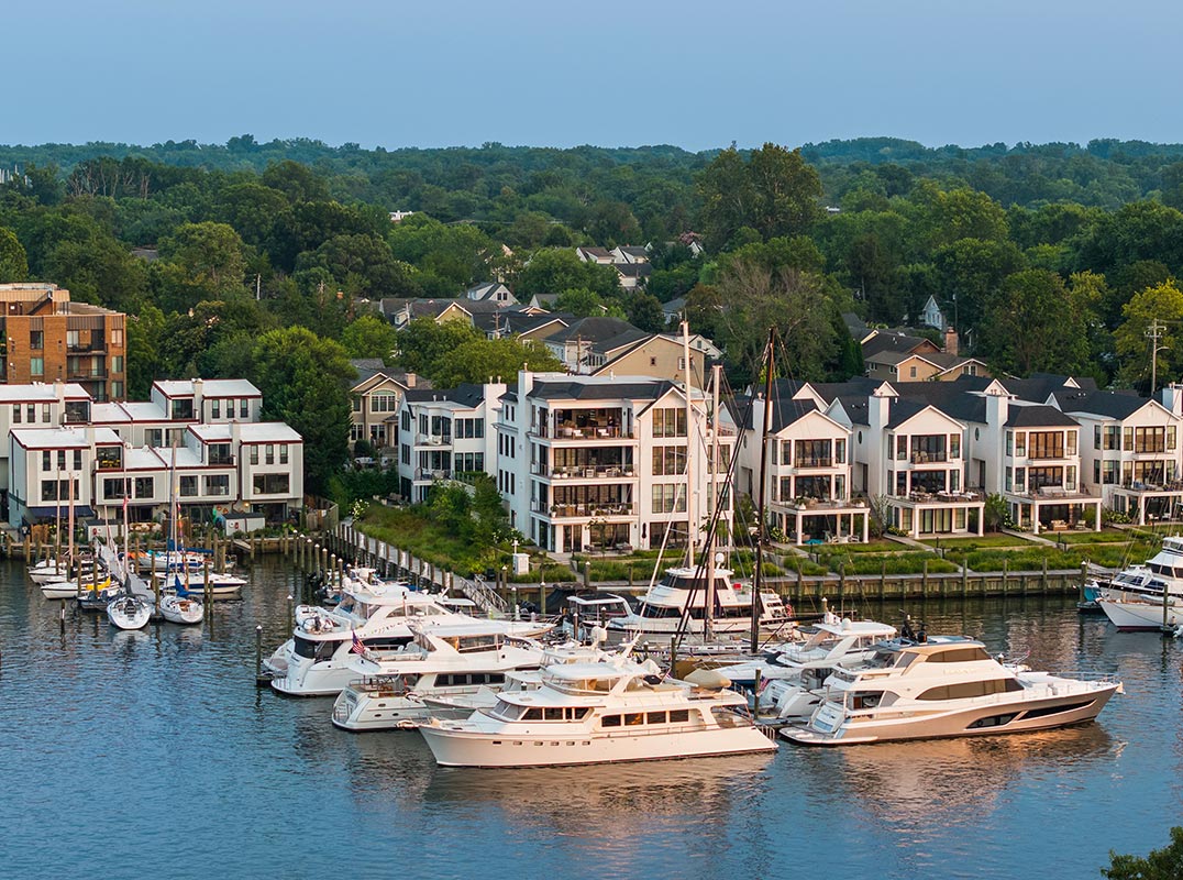 The South Annapolis Yacht Centre provides an elegant boutique lifestyle in a marina village setting comprised of 11 Residences and a full-service marina. SAYC is part of the rich Annapolis maritime heritage with 74 new deep water slips (12ft MLW+) to accommodate boats up to 140ft, extensive electrical supply options, waterfront boardwalk, travel lift & direct access to essential marine services.