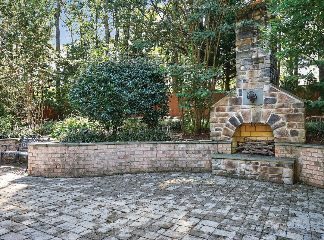 Outdoor Living: The property boasts an incredible, fully fenced backyard designed for play, privacy, and entertaining. A large patio with an outdoor fireplace overlooks wooded surroundings, offering a serene backdrop for gatherings year-round.