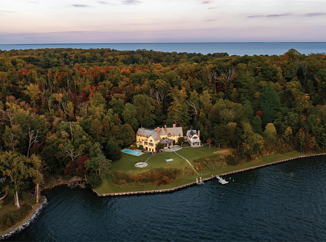 A vision of the Olmsted Brothers in the 1920s, its approximately 200 private residences are dotted along meandering roads. Over two-thirds of the 1000-acre island are tree-covered, a large freshwater pond and nine-hole Charles Blair Macdonald golf course complete the landscape. Miles of scenic shoreline surround this secure gated sanctuary. Round-the-clock gatehouse staffing and a dedicated police force ensure an exceptional level of security and privacy for this close-knit community.