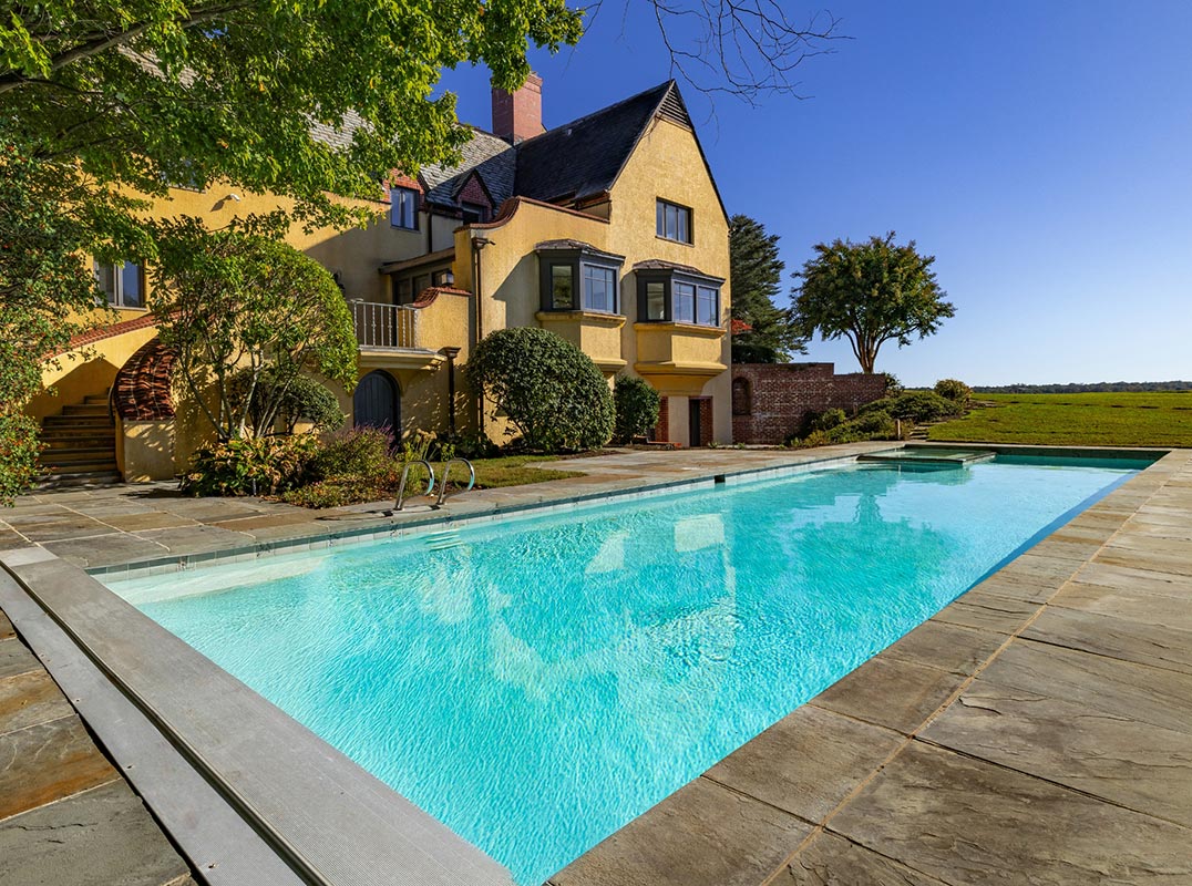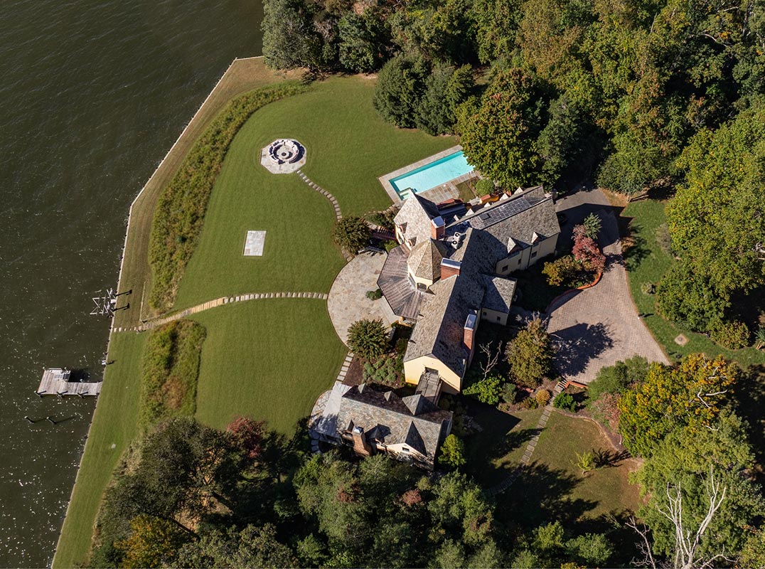 One of the most significant estates within this coveted enclave is Magothy Road, a resplendent home that infuses European grandeur into its coastal surroundings. Distinguished and widely recognized for its iconic octagonal turret, the residence sits on over two acres of private, protected waterfront along the broad Magothy River at its inlet to the Chesapeake Bay.