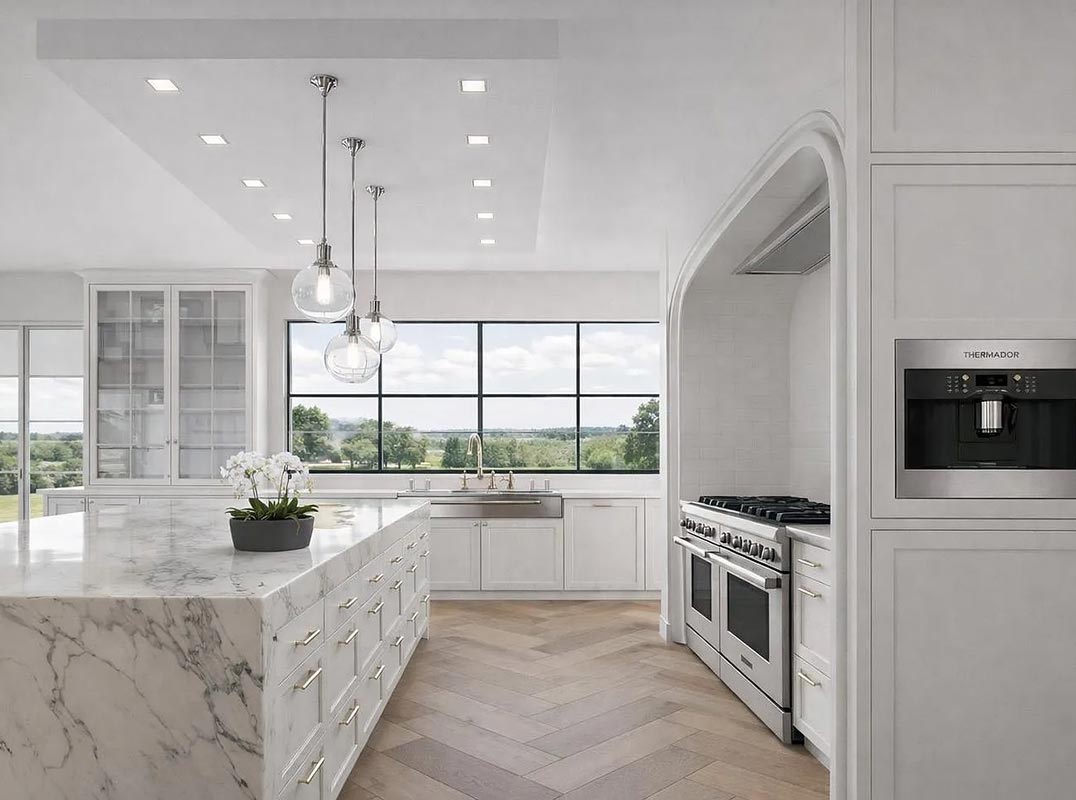 The open-concept Main Level features 10-foot ceilings, wide-plank white oak flooring, and expansive 8-foot glass family room doors that flood the interiors with natural light and create effortless indoor-outdoor flow. The thoughtfully designed layout is ideal for both everyday living and sophisticated entertaining.