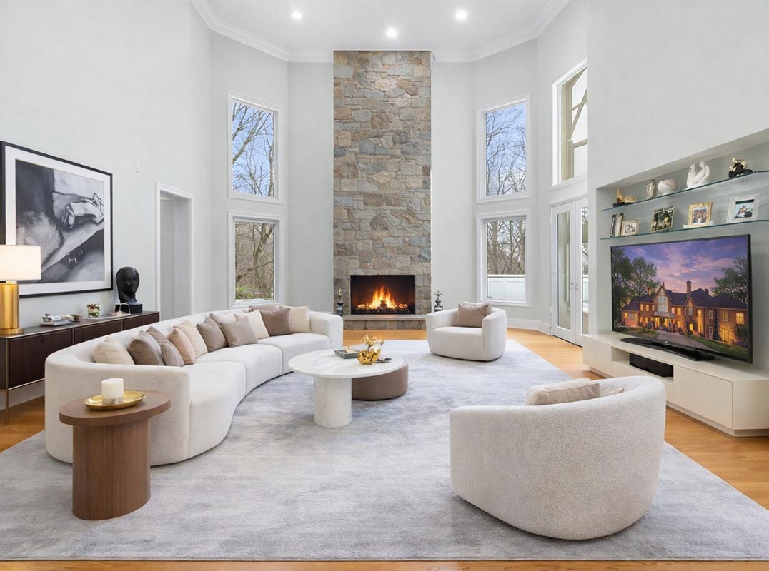Welcome to 7003 Fawn Trail Ct, Bethesda, MD. Set discreetly on 2.5 private acres within Bethesda’s coveted Avenel community, this extraordinary estate represents a rare convergence of scale, craftsmanship, and resort-level living. Offering over 16,000 square feet of finished interior space (estimated), the residence delivers a level of privacy and amenities rarely available. Upon arrival at the circular driveway, you are greeted by grandeur. When entering, you find a dramatic two-story foyer that establishes immediate presence—grand in proportion yet balanced in refinement, seamlessly blending the formal entertaining rooms: a formal living room with a fireplace, and the formal dining room with the 2nd of 5 fireplaces found inside this spectacular estate. The expansive picture windows in both rooms bring a true sense of oneness with the seasons outside.