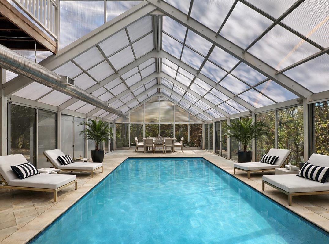 Wellness and recreation are integral to the estate’s design because it is here in the lower level where access to the newly resurfaced racquetball/sport court is located. After you claim victory, you will be only steps away from your newly designed private spa, which features a steam shower, a jetted soaking tub, and a dedicated massage area—creating a true in-home wellness retreat. At the heart of the property is the showpiece amenity: a spectacular indoor pool with a retractable roof, allowing year-round swimming and the rare luxury of open-air enjoyment during warmer months.