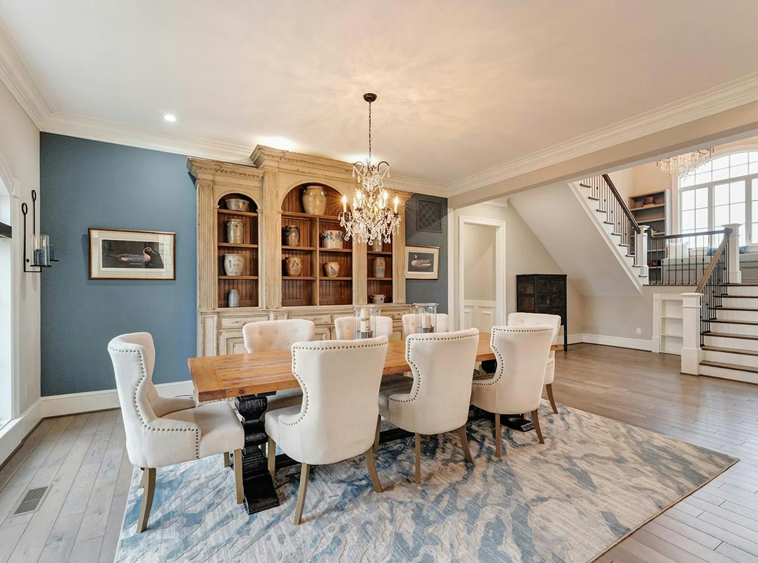 This romantic French Country revival, set within coveted Lee’s Crossing, unfolds gracefully from its bucolic surroundings, where provincial architecture is framed by flowering trees and seasonal blooms.